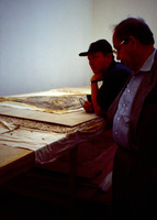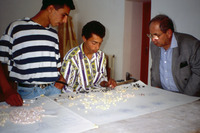 Jordan. Madaba, HRH Prince Ra'ad bin Zeid (b.18 Feb. 1936) viewing the work of Madaba Mosaic School