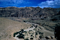Jordan. Petra, view of Colonnaded street and Royal Tombs from el Habis