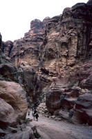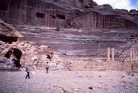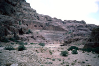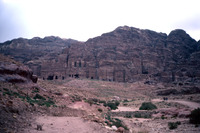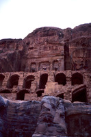 Jordan. Petra, looking up at Royal Tombs and Nabataean caves