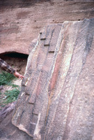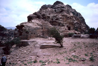 Jordan. Petra, pointing to Nabataean step design over tomb