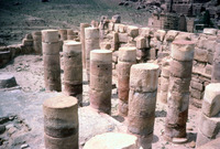 Jordan. Petra, fallen columns, looking toward Colonnaded street