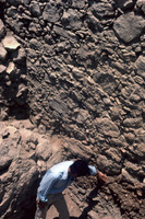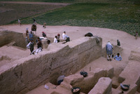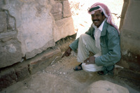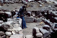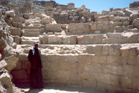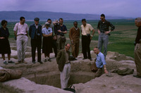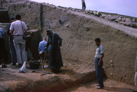 Jordan. Amman Citadel excavations, Fawzi Zayadine pointing to Hellenistic early Bronze Age stratum