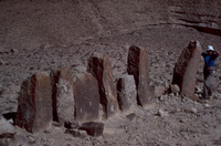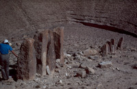Jordan. Lejjun, man reclining on fallen standing stone