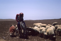 Jordan. Mount Nebo, shepherd boys and sheep