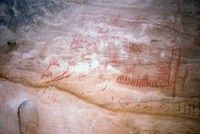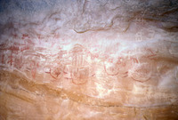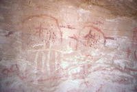 Jordan. Wadi Rum. Wadi Disi, rock shelter with red paintings