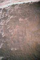 Jordan. Wadi Rum. Wadi Disi, Jabal Amud. Rock shelter with drawings, possibly a map