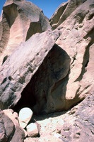 Jordan. Wadi Rum. Wadi Disi, Jabal Amud. Rock shelter entrance