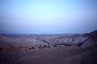 Jordan. Khanazir, looking back at Ghor on way to site