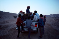 Jordan. Khanazir, workers on truck