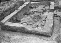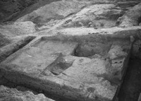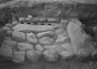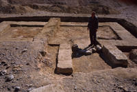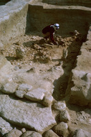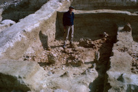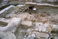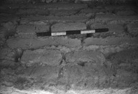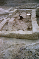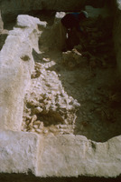 Jordan. Bab edh-Dhra', Cemetery A, Charnel House A22 excavations. Mud brick inside south wall