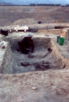 Jordan. Bab edh-Dhra', Cemetery A, Charnel House A22 excavations. Burned areas