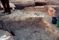 Jordan. Bab edh-Dhra', Cemetery A, Charnel House A22 excavations. Burned area