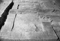 Jordan. Bab edh-Dhra', Cemetery A, Charnel House A21. Looking south at entry pavement