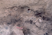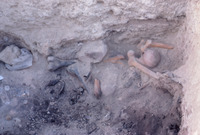 Jordan. Bab edh-Dhra', Cemetery A, Charnel House A22 excavations. Bone and pot finds