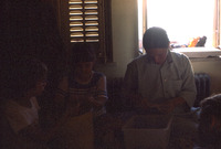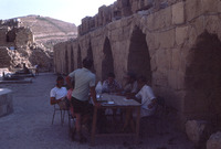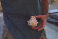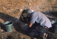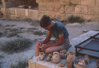 Jordan. Karak, Becky cleaning bones from cemetery at resthouse