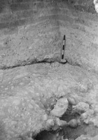 Jordan. Bab edh-Dhra', Cemetery A, Charnel House A51. Burned posts (thicker than roof-poles)