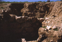 Jordan. Tell er-Rumeith, looking east in square 1 at mudbrick walls