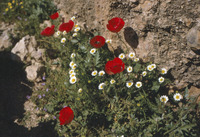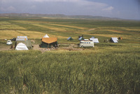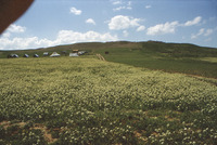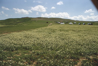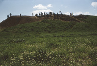 Jordan. Tell er-Rumeith, tell with camp in springtime