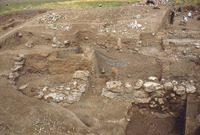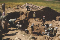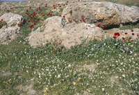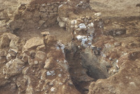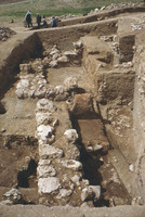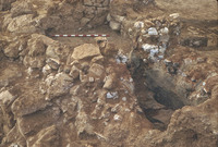 Jordan. Tell er-Rumeith, tell and cave in foreground