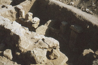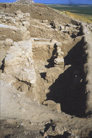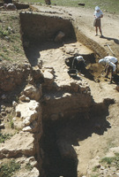 Jordan. Tall er-Rumeith, Marilyn Schaub sorting potsherds