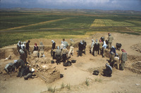 Jordan. Tall er-Rumeith, Thomas Schaub and local workers surveying