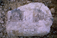 Jordan. Bab edh-Dhra', Cemetery A, Tomb A76E. One of stones blocking the tomb entrance, from bottom of pile