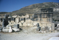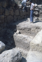 Jordan. Iraq al-Amir, looking southwest at Qasr al-Abd west wall from inside. Reconstruction over stratum II.2