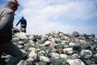 Jordan. Khirbat Al-Balua, Area B. Fawzi Zayadine pointing to where inscription found