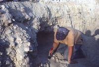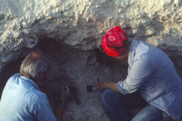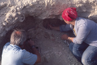 Jordan. Bab edh-Dhra' cemetery, roadside trench tomb. Michael Finnegan and Liza excavating