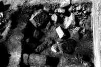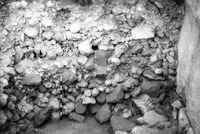 Jordan. Iraq al-Amir, square II.11 approximately a meter down, showing fallen stones of north Qasr al-Abd facade