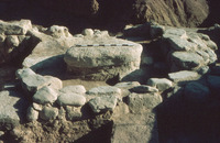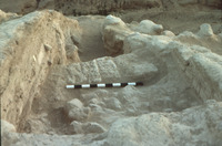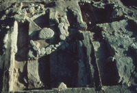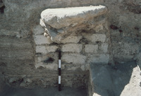 Jordan. Bab edh-Dhra‘ town site, Field XVI.4, mudbrick circular pedestal with stone capping in south balk. Contemporary with possible sanctuary