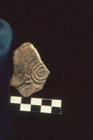 Jordan. Bab edh-Dhra‘ town site, Field XVI, impressed stamp design with distinctive spirals and figures from sanctuary area