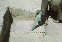 Jordan. Bab edh-Dhra‘ town site, Field XVI, javelin blade embedded in mudbrick wall