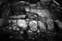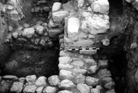 Jordan. Iraq al-Amir, square I.4, looking north at Iron Age I fort wall below plaster walls