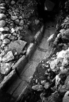 Jordan. Iraq al-Amir, square I.9, canal in southeast quadrant. Looking north at east-west wall in middle of square