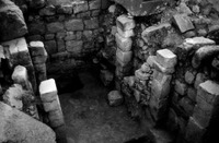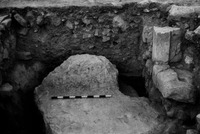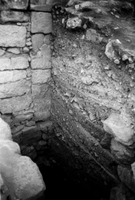 Jordan. Iraq al-Amir, square II.7, looking north at blocking and level of Stratum I burn