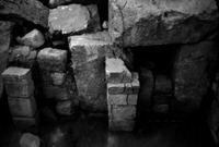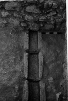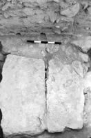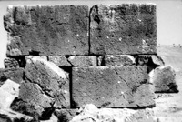 Jordan. Iraq al-Amir, square II.2, looking east-southeast at foundation course over doorblock at top. Foundation courses at west Qasr al-Abd wall on right
