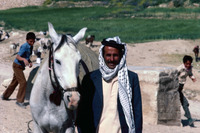 Jordan. Petra, horse and guide going back up Siq