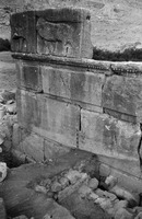 Jordan. Iraq al-Amir, closeup of fountain rear