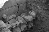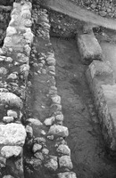 Jordan. Iraq al-Amir, Field I, Plaster Building. Looking south at probe-holes