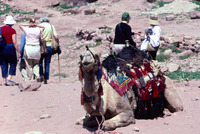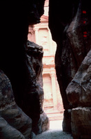 Jordan. Petra, Khaznet Far'oun (Treasury) from Siq