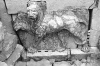 Jordan. Iraq al-Amir, feline fountain (bottom) and lion frieze (top) of Qasr al-Abd east wall