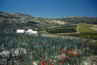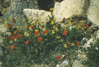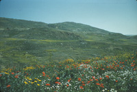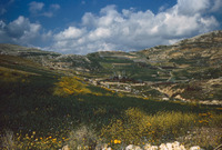 Jordan. Iraq al-Amir, view from john (outhouse) looking southeast at daisies and poppies