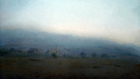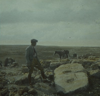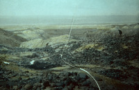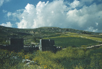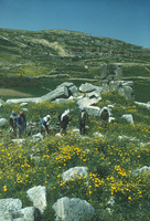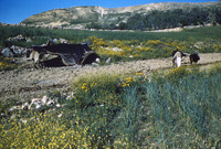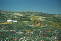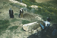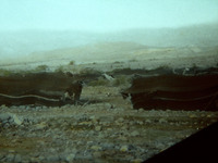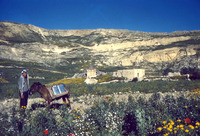 Jordan. Iraq al-Amir, setting up camp, looking east toward village