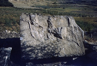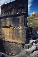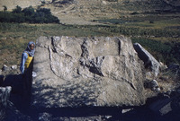 Jordan. Iraq al-Amir, feline stone north of Qasr with meter stick