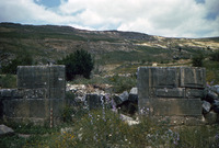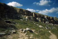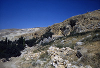 Jordan. Iraq al-Amir, looking northwest at Roman cemetery, camp, and caves from village
