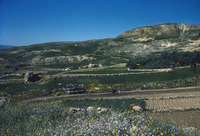 Jordan. Iraq al-Amir, wildflowers and view on way to town