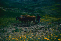 Jordan. Iraq al-Amir, closeup of plowing from Nancy's camp tent