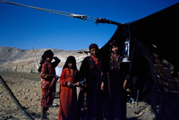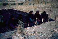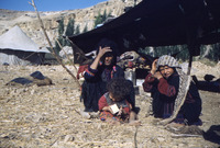 Jordan. Iraq al-Amir, ladies sewing Hussein's tent, adding new black hair strips