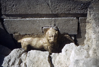 Jordan. Iraq al-Amir, Qasr al-Abd, closeup of feline fountain with wall removed